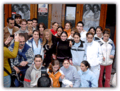 de cenar nos reunimos todos enfrente del hotel, en un banco. Ese banco se