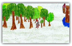 su hija y sus guardias por el lindero de un frondoso bosque ....