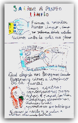 Fuimos a visitar Punto Limpio. Como no sabíamos dónde estaba, hicimos antes de salir un plano.(en la imagen) ¡Qué alegría nos