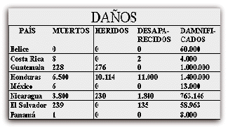 ha aportado. Las pérdidas económicas causadas por el Mitch se elevan a más de medio billón de pesetas. Los propios presidentes de los cuatro países afectados han elaborado un plan conjunto: pedir que se condone su deuda externa, pues las pérdidas han sido tan grandes que de no ser así no podrían volver a reconstruir sus países. Todos los rincones del mundo se han volcado en ayudar a los damnificados