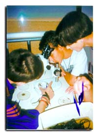Al día siguiente montaron un pequeño laboratorio en el que nosotros mirábamos a través del microscopio los animales que los monitores habían cogido buceando. Había una estrella de mar, cangrejos, ofiuras, y muchos gusanos. Más tarde pusimos en común todas las fichas y apuntes que habíamos tomado y realizamos unas adivinanzas y un mural con las cosas que más nos habían gustado. Para nosotros fue un fin de semana