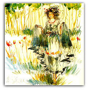 y las mozas van al bosque a buscar en las fuentes la flor del
