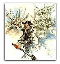 Las anjanas secan el llanto de los amantes en cuita, alivian las congojas de los caminantes perdidos en la niebla y las nieves. Enervan las hambres de los pobres, las pesadumbres de los tristes, las quejas de los que han menestar pan y justicia en las ásperas jornadas del mundo. Cúlebre Culebra (común símbolo del mal) a la que se