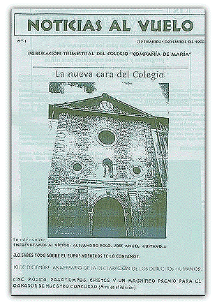 Noticias al Vuelo El Taller de Prensa del Colegio Compañía de María lanza su primera publicación trimestral "Noticias al Vuelo". Por fin ha salido el primer número de nuestra nueva revista escolar. Se llama "Noticias al vuelo" y está cargado de un montón de artículos interesantes.