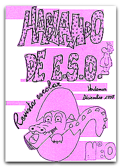 Hablando de E.S.O Con el objetivo de mejorar la comunicación entre alumnos y abrir las puertas hacia la liberttad de expresión ha comenzado a publicarse la revista Hablando de ESO, en el colegio Verdemar de Santander. Relatos, tests, historias, entrevistas, pasatiempos, artículos libres y dibujos tienen cabida en las páginas de esta nueva publicación escolar.