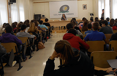 Carmen para dar una charla a los estudiantes de tercero