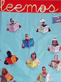 Este curso ya estamos en cuarto. Sabemos que la lectura es muy importante y, por eso, hemos empezado un viaje para el que necesitamos un pasaporte. En la clase tenemos un mural con nuestras fotos. Cada vez que leemos un libro rellenamos una ficha de lectura, o hacemos un resumen de la lectura. Cuando lo terminamos, marcamos el pasaporte con una pegatina verde si nos ha gustado o amarilla si el libro nos ha sido maravilloso, pero aún así, lo hemos leído.