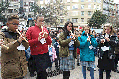 de flauta interpretando el Himno de la Alegría. |
