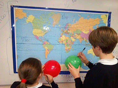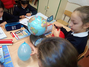 la Tierra sobre un globo. |
