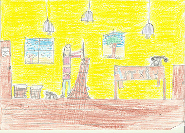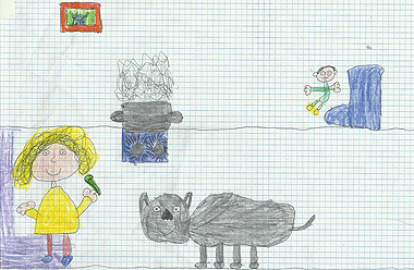 chimenea y el gato se fue a secar. Mientras ella cosía