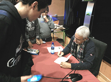 un tiempo a firmar ejemplares de sus novelas y aprovechamos