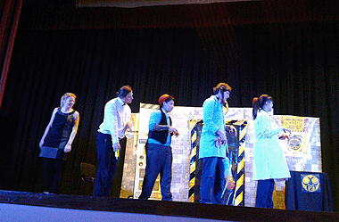 Dos alumnos de Secundaria también subieron al escenario para participar en la trama de 'I spy'. La doctora Dra intenta manipular y controlar a sus gobiernos mundiales con un peligroso virus. Para detenerla, James necesita confiar en su entrenamiento como espía, hacer nuevas amistades y utilizar todos los artilugios que los Servicios Secretos de su Majestad le va a proporcionar, pero se enfrentará con otro formidable obstáculo: su propia torpeza e ineptitud. Sin duda, otra comedia desternillante que gustó a todos los alumnos.