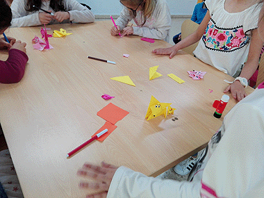 - Taller de papiroflexia a cargo de Laura y Cinta, dos trabajadoras de Naturea que nos enseñaron a hacer animales preciosos