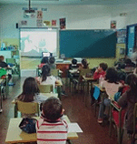 frente a los escolares. |