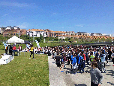 en la zona de salida los alumnos y algunos profesores