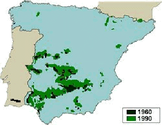 denso y baja densidad humana) debido a las repoblaciones