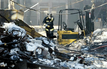 desolado los restos del incendio. |